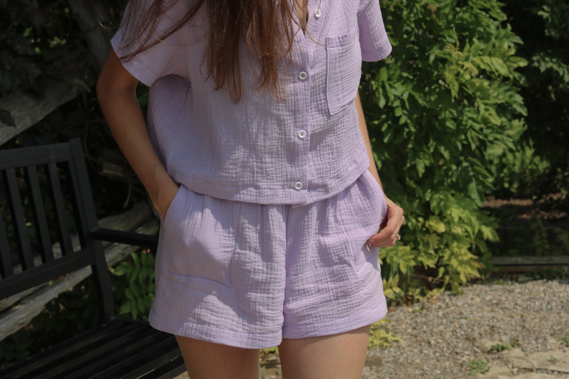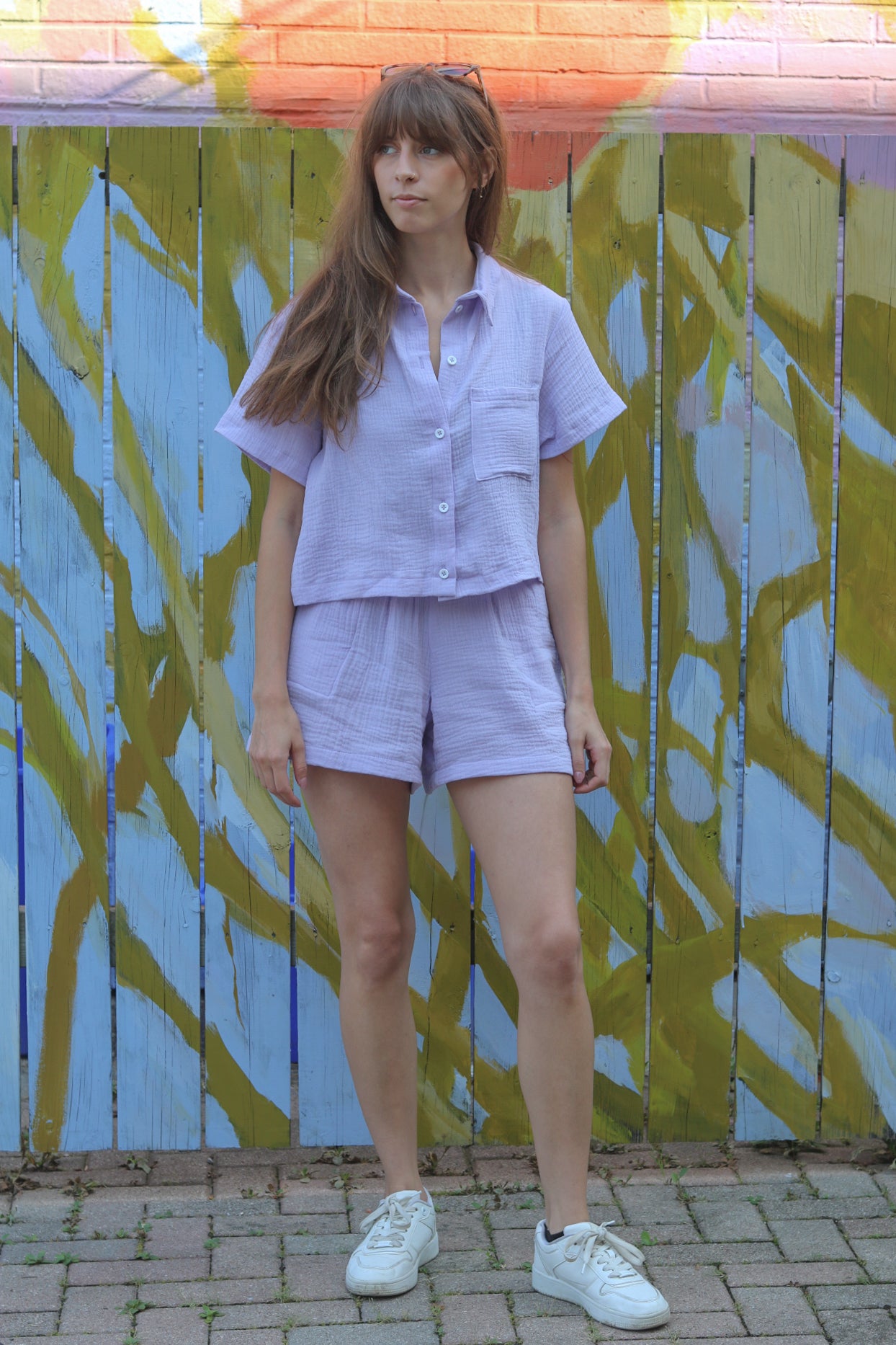 Lightweight, breathable, and naturally textured. This gauzy fabric has a soft crinkle and airy feel—perfect for warm weather wear or layering.